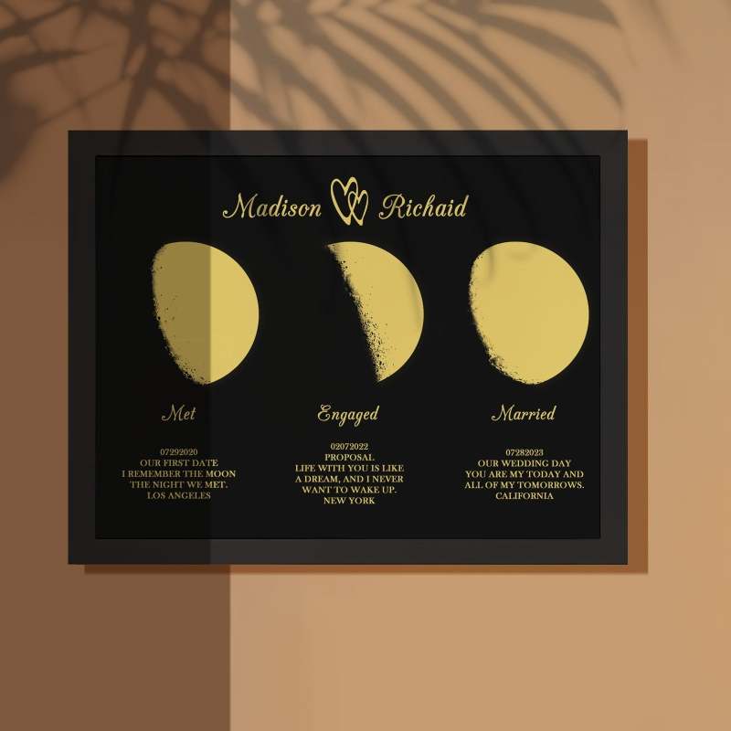 Aangepaste Maanfase Houten Frame Drie Maanfase Met Gepersonaliseerde Naam En Tekst