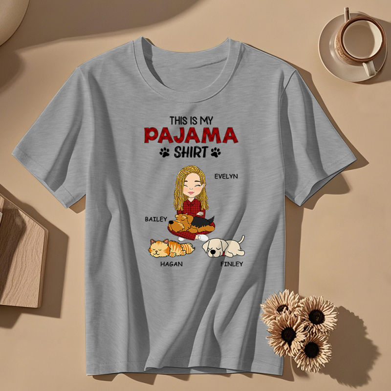 Aangepast Naam Cartoon Slapend Huisdier T-shirt Gepersonaliseerd Unisex T-shirt Moederdag Cadeau T-shirt