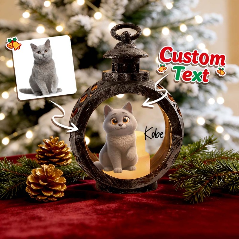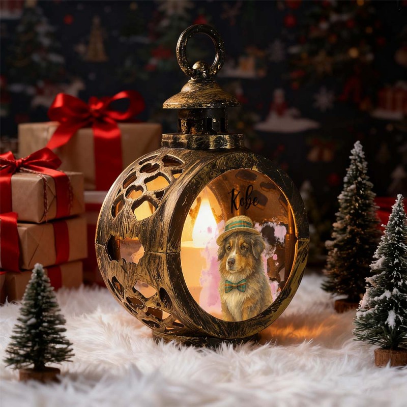 Gepersonaliseerde Lantaarn Met Huisdierfoto En Meerdere Effecten Beschikbaar. Gepersonaliseerde Kerstlantaarn Met 3d-effect.