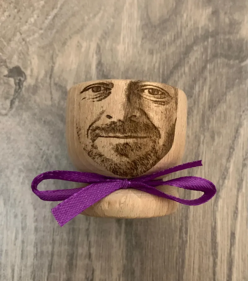 - Alleen het hoofd (tot aan de wenkbrauwen) wordt gegraveerd