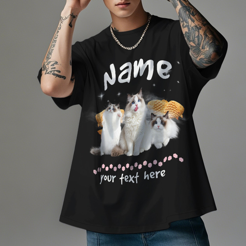 Aangepaste Foto Vintage Retro Kat T-shirt Gepersonaliseerd Schattig Kattenfoto T-shirt Cadeau-idee