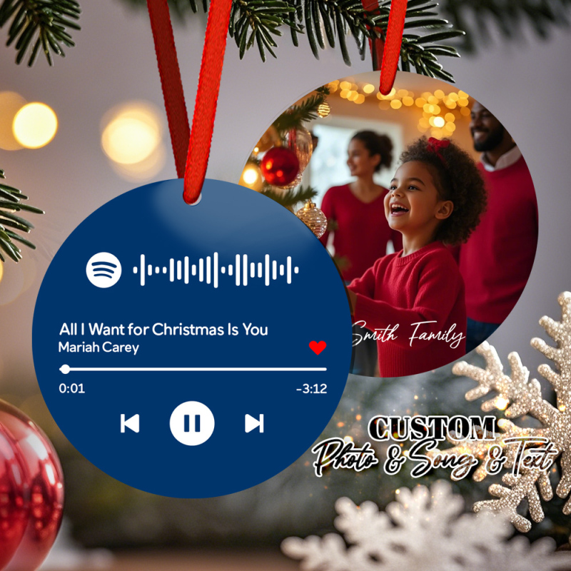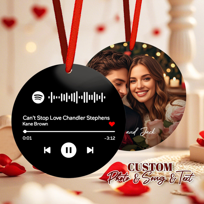 Aangepaste Scanbare Spotify-code Groene Ornamenten Foto Hangende Ornament Gegraveerde Aangepaste Muziekliedornament Valentijnscadeau