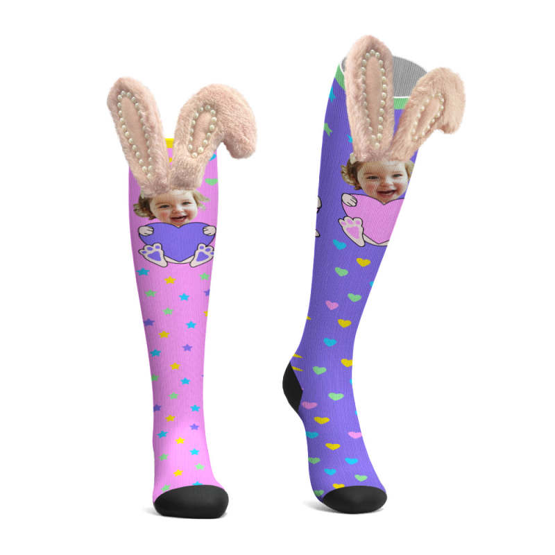 Aangepaste Sokken Kniehoge Gezichtssokken 3d Bunny Ears Met Parelsokken - SokkenFoto Aangepaste Sokken Kniehoge Gezichtssokken 3d Bunny Ears Met Parelsokken - SokkenFoto