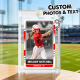 Maak een uniek aandenken met deze aangepaste sportfotokaart, gepersonaliseerd met de foto, naam, nummer en statistieken van uw kind. Deze portretkaart in trainerstijl is perfect voor jonge atleten, teams en sportfans en is een leuk en gedenkwaardig cadeau voor verjaardagen, seizoensprijzen en teamvieringen. Ideaal voor elke sport, inclusief voetbal, basketbal, honkbal en meer.