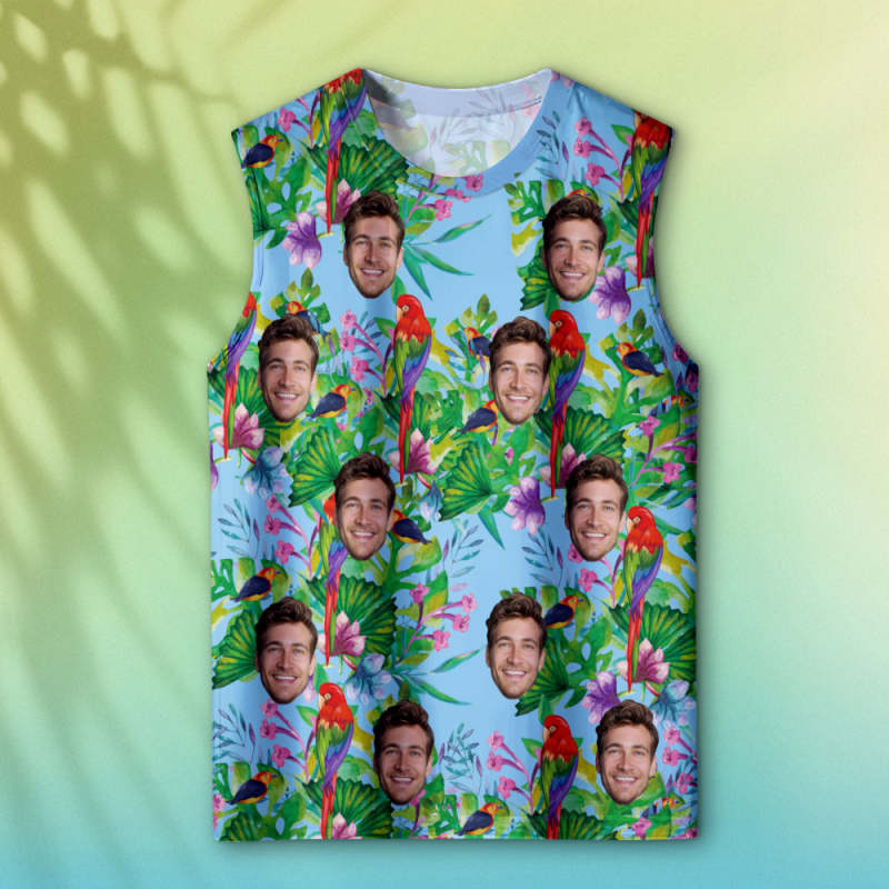 Aangepaste Dikke Gezicht Tanktops Mouwloos Shirt Voor Mannen Papegaai