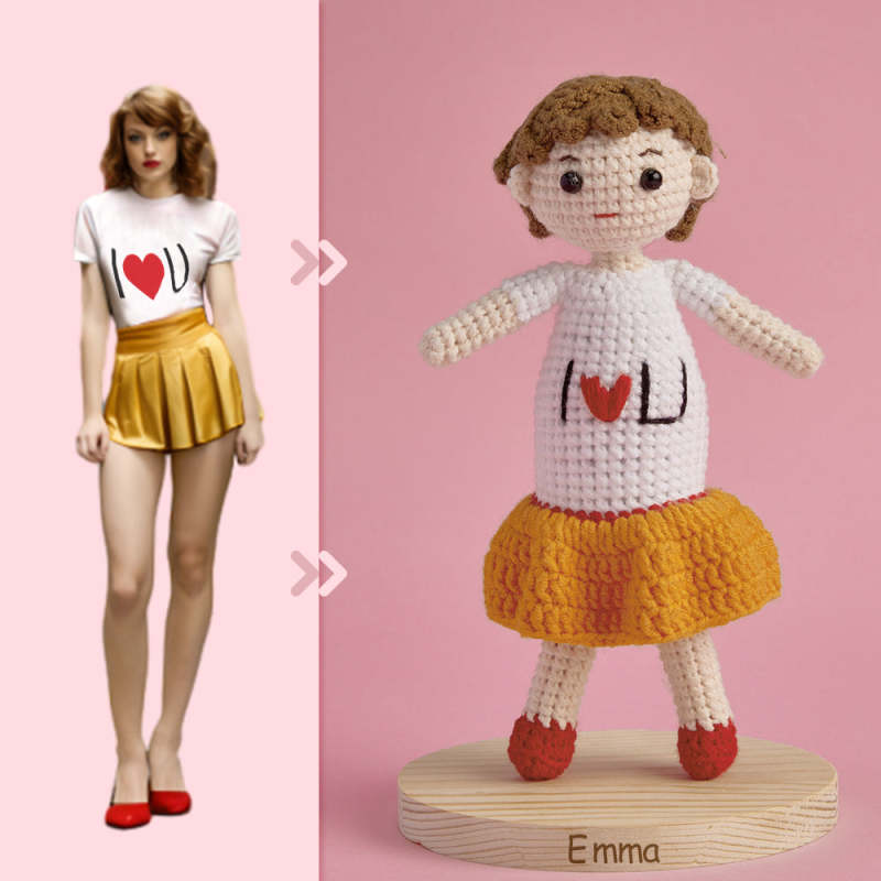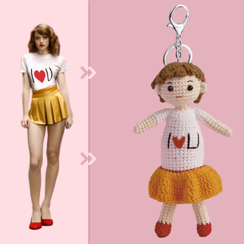 Full Body Aanpasbare 1 Persoon Aangepaste Gehaakte Pop Gepersonaliseerde Geschenken Handgeweven Mini-poppen - I Love U Girl