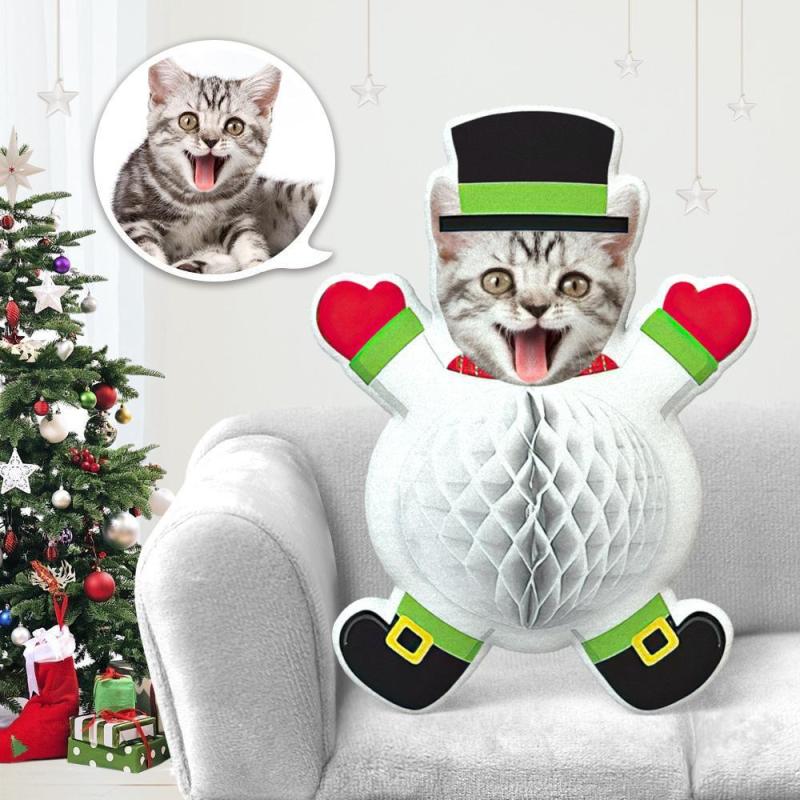 Aangepaste Hondengezicht Op Kussen Hondengezicht Cartoon Lichaamskussen Gepersonaliseerde Foto Kussen Cadeau - Wit Kerst Minime Kussen