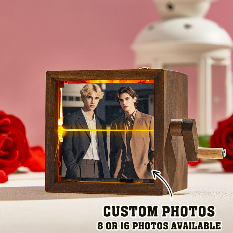 Op Maat Gemaakte Flipbook met handzwengel Mechanisch Met De Hand Aangedreven Fotoalbum Met Lichtzwarte Walnoot Baby-fotokubusframe Creatief Cadeau LGBT