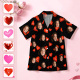 Gepersonaliseerde Pyjama Met Korte Mouwen En Hartje, Nachtkleding Voor Stellen, Valentijnscadeau Voor Hem.