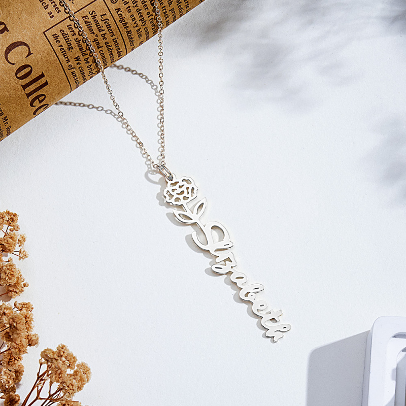 Gepersonaliseerde Geboortebloem Naamhanger Roestvrij Staal Sieraden Cadeau No Rain No Flowers Ketting