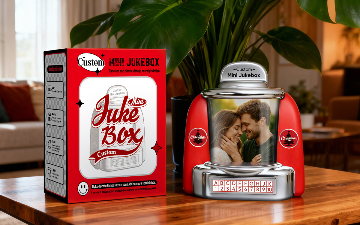 Gepersonaliseerde Mini-jukebox Met Minnaarfoto En Bluetooth-muziekspeler – Jukebox-cadeau Op Maat Voor Koppels, Romantische Momenten, Jubilea, Valentijnsdag En Woondecoratie
