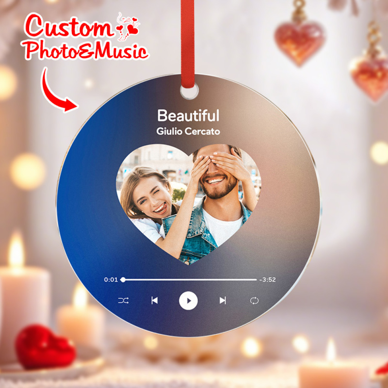 Gepersonaliseerde Muziek- En Fotoornamenten Valentijnsdagcadeauidee Voor Koppels