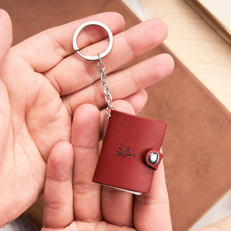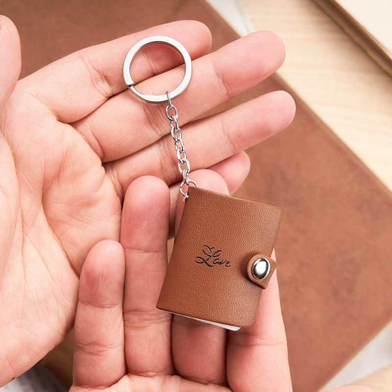 De sleutelhanger met foto's is gemaakt van echt leer. Er zijn 8 leerkleuren beschikbaar om te bestellen.