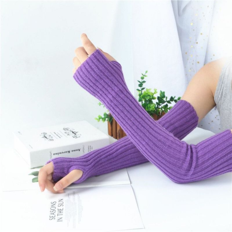 Warme Armhoes Dames Gebreide Wollen Lange Armhoes Platte Naaldhandschoenen Met Halve Vingers