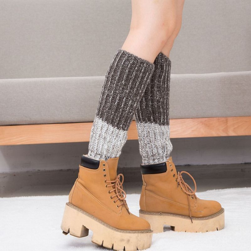 Winter Kleurblok Wollen Sokken Gebreide Sokken