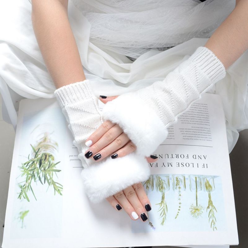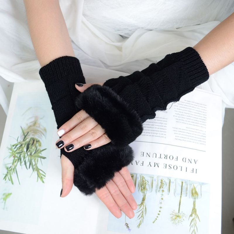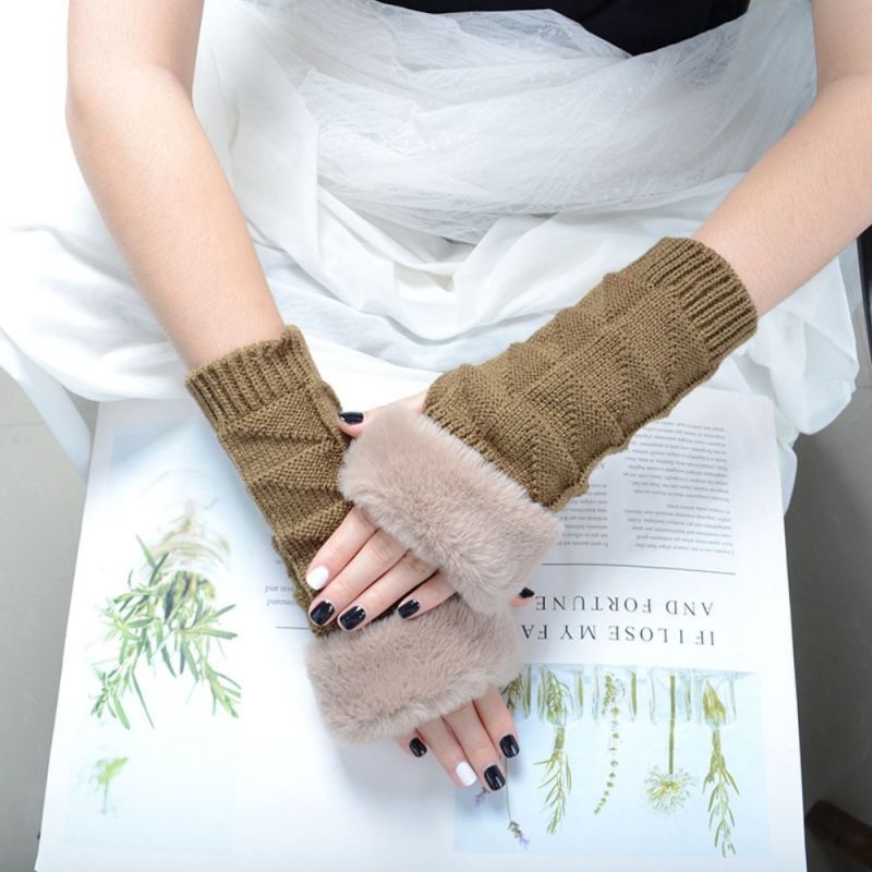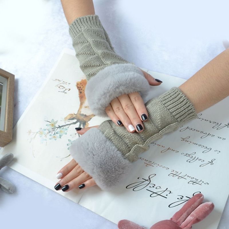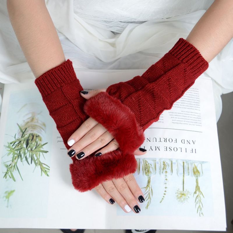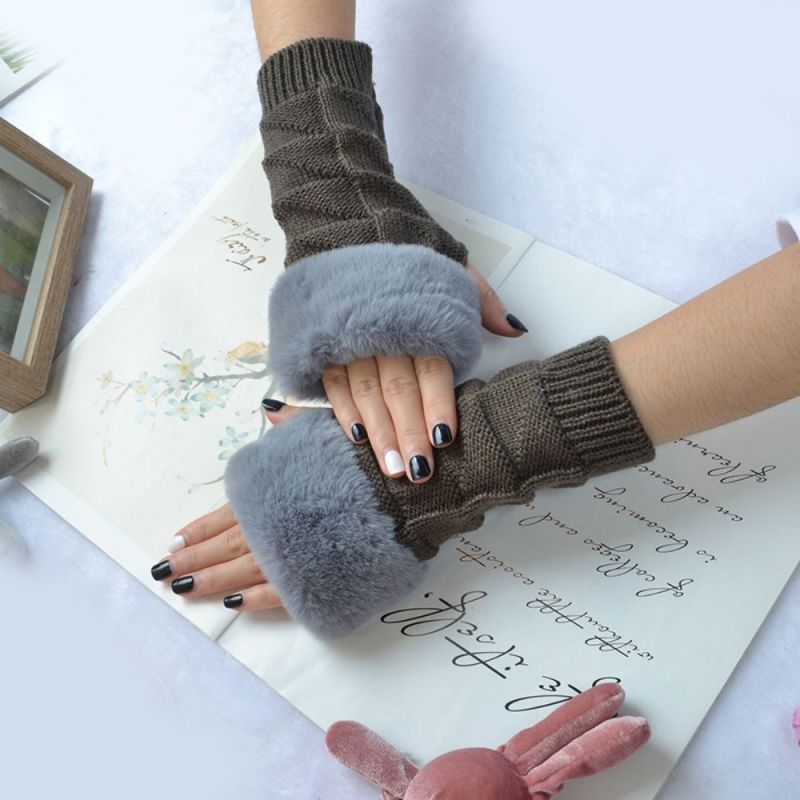 Winter Stretch Dames Fleece Gebreide Half Vinger Driehoek Blok Korte Handschoenen