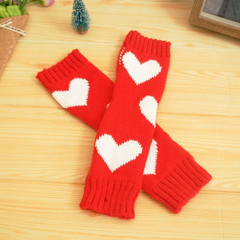 Winter Warm Arm Cover Kerst Liefde Breiwol Half Vinger Gat Mouw