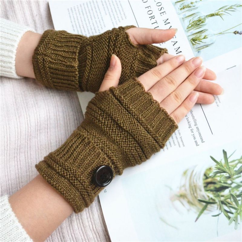 Winter Warme Knoop Wollen Handschoenen Half Vinger Handschoenen