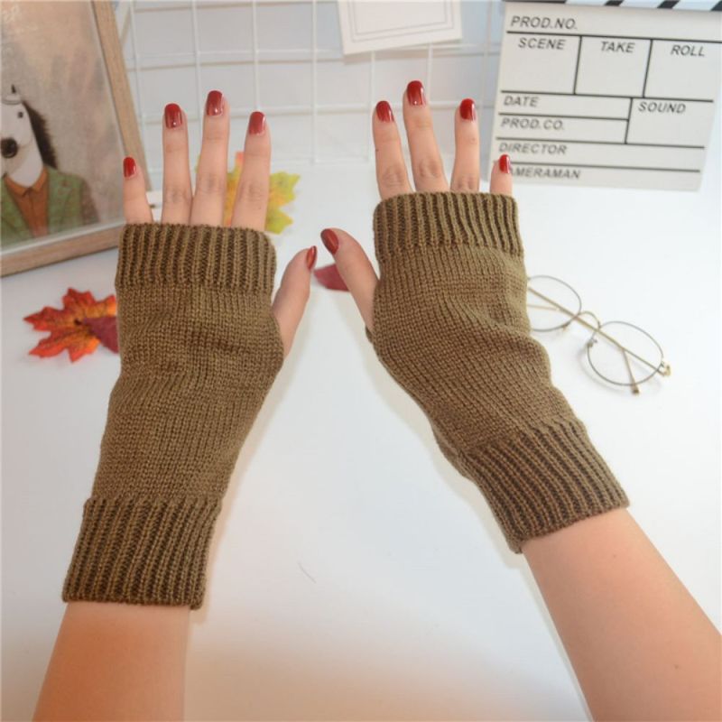 Winter Warme Korte Effen Effen Kleur Gebreide Halfvingerhandschoenen Voor Dames
