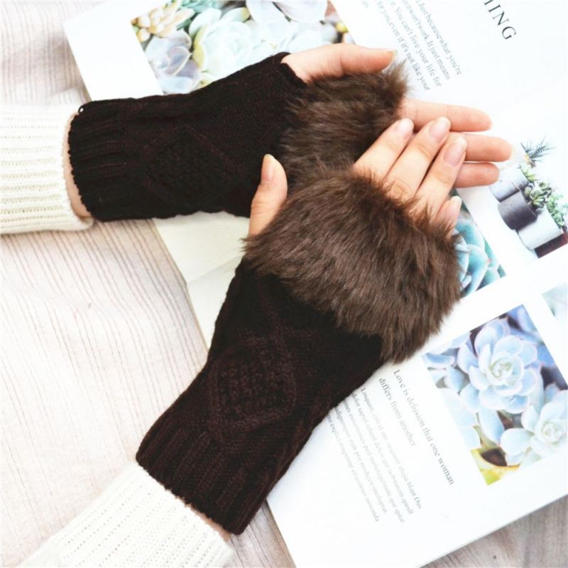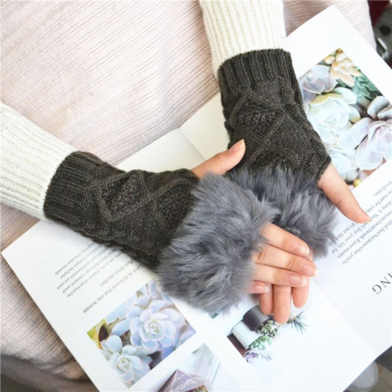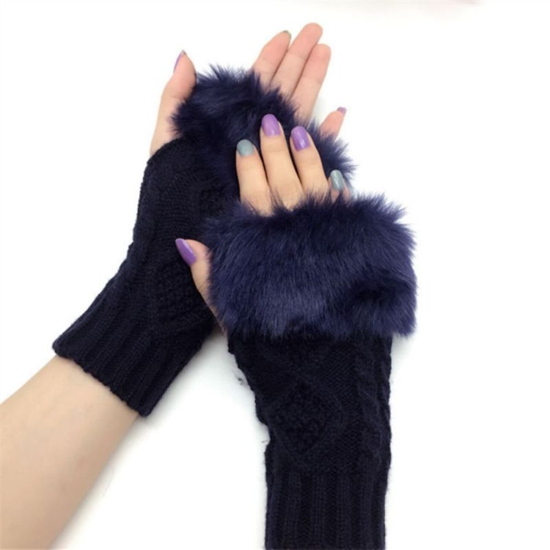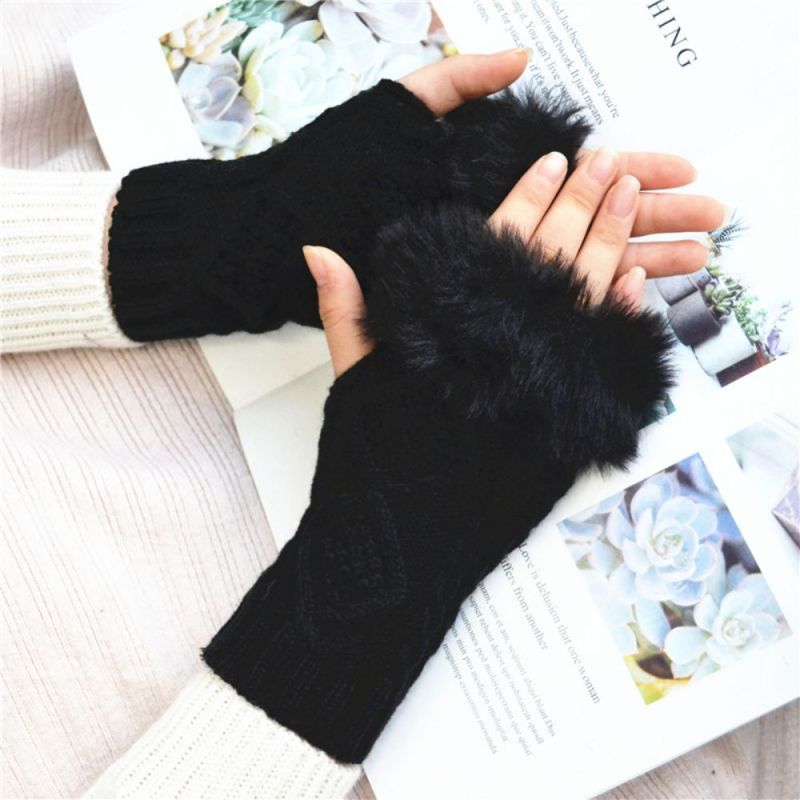 Winter Warm Half Finger Short Fleece Two Rhombus Fingerless Gloves