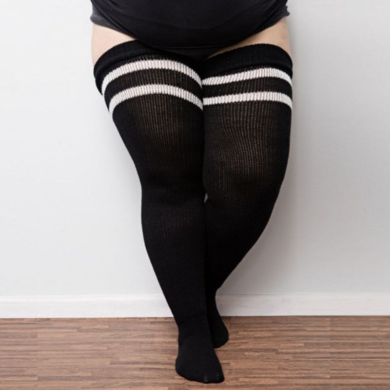Dames Winter Beenwarmers Grote Maat Drie Bars Gestreepte Mode Lange Buis Over Knie Stapel Sokken