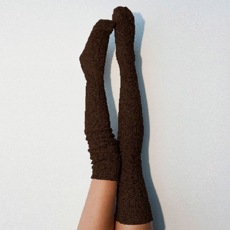 Dames Winter Beenwarmers Effen Kleur Kousen Gebreide Over De Knie Stapel Sokken